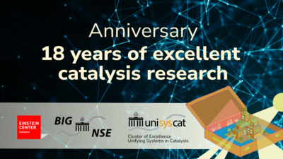 After 18 years of the Excellence Clusters and the doctoral program, it's time to celebrate! Therefore, in December 2025, we will come together once again to reflect and have a party. All current and former researchers and staff of UniCat and UniSysCat, their Scientific Advisory Board members and the students and alumni of (EC²)/BIG-NSE are warmly invited to commemorate and celebrate 18 remarkable years of collaborative catalysis research.