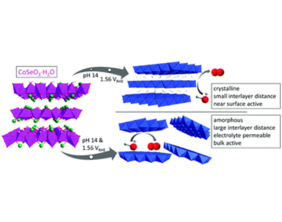 In an interdisciplinary approach, the three UniSysCat research groups of Holger Dau, Ingo Zebger and Matthias Driess introduced a new concept to understand the formation of bulk- and surface-active layered (oxy)hydroxides for water oxidation starting from a cobalt selenite precursor, while considering the substrate and the transformation conditions.
